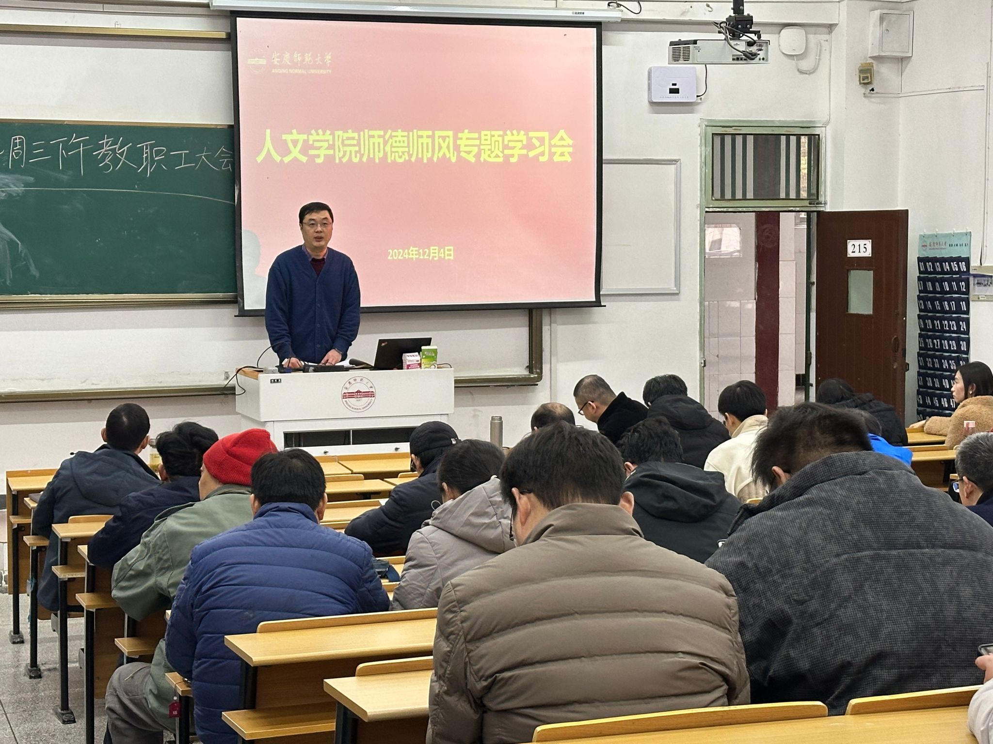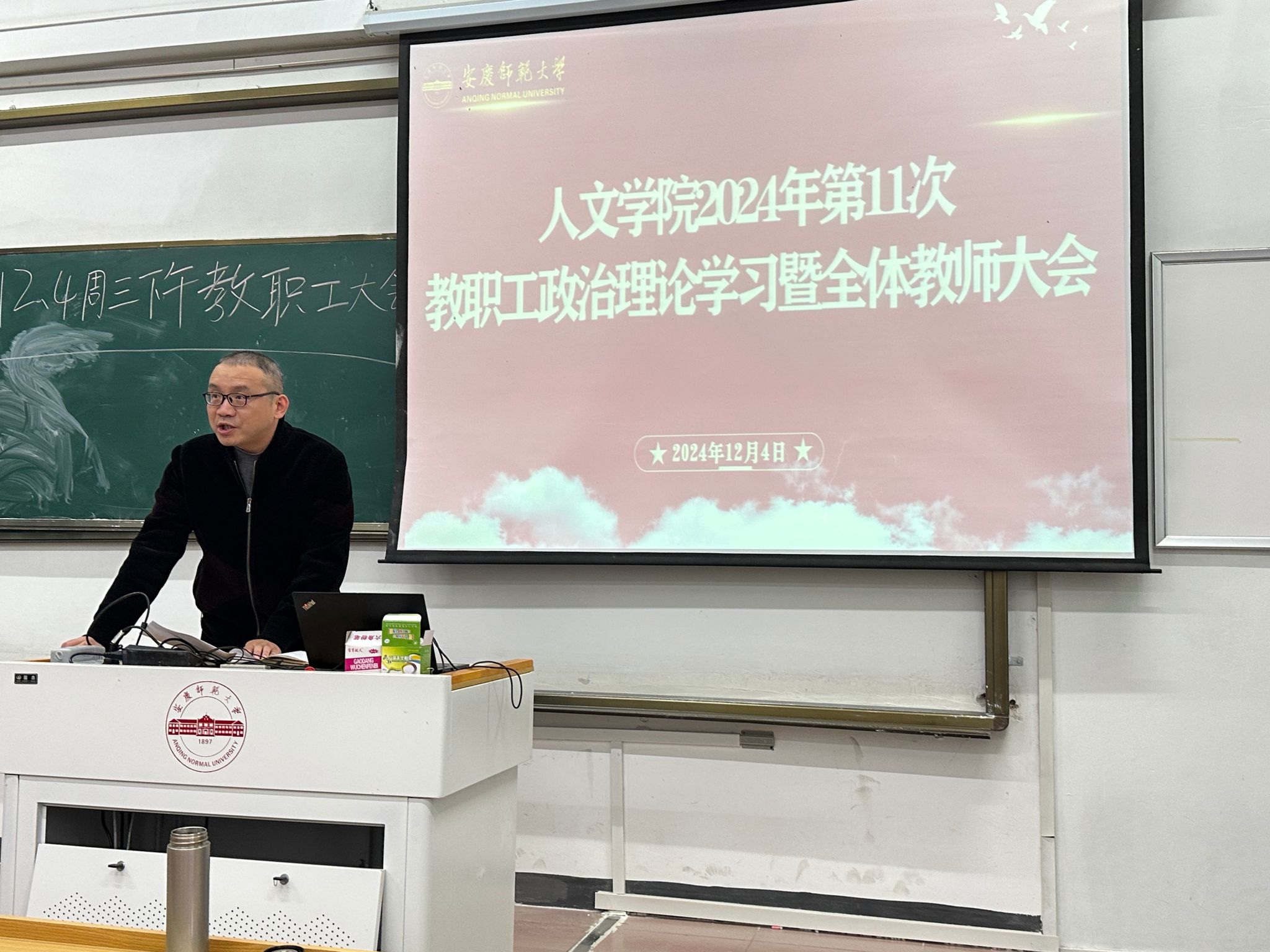 12月4日,beat365亚洲体育官方网站召开2024年第11次教职工政治理论学习会暨全体教师大会。院长汪孔丰主持会议,学院领导班子,全体教职工参加会议。