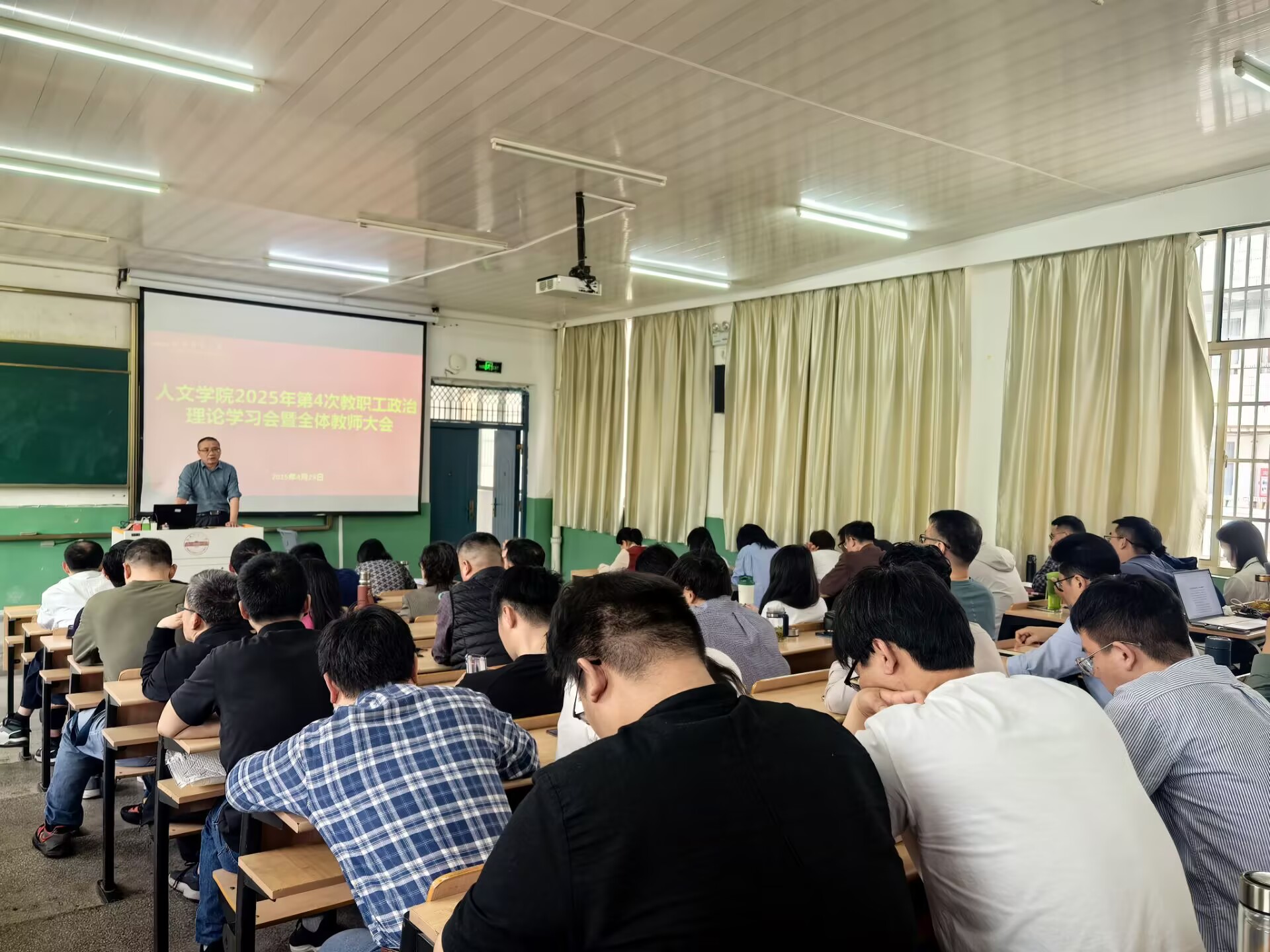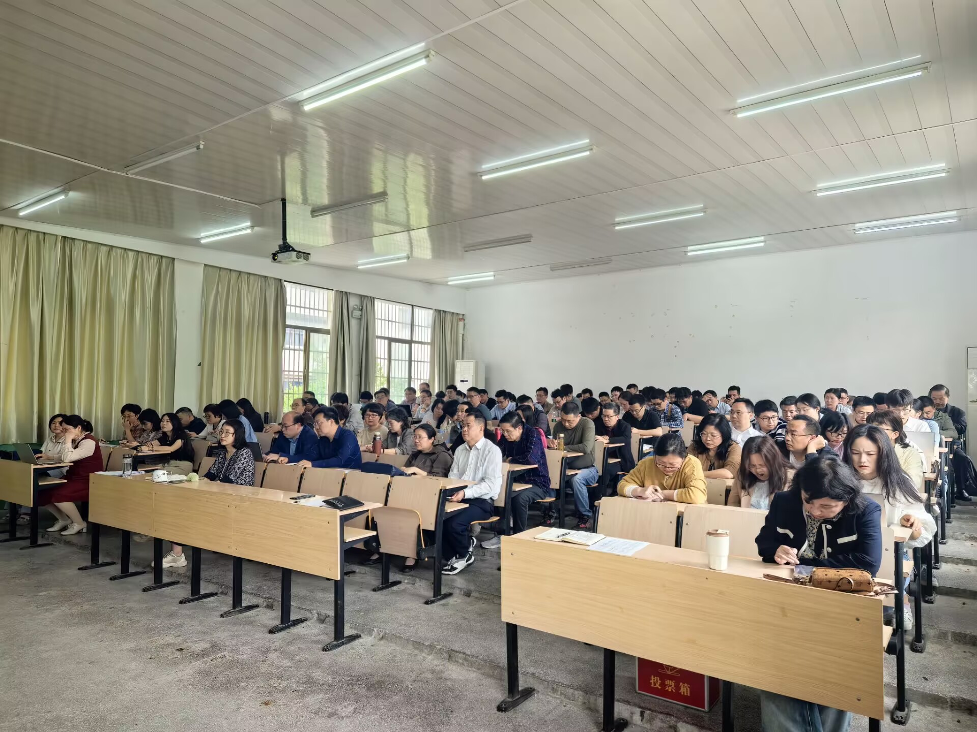 4月23日,beat365亚洲体育官方网站在理二阶教室召开2025年第4次教职工政治理论学习会暨全体教师大会。汪孔丰院长主持会议,全体教职工参加会议。