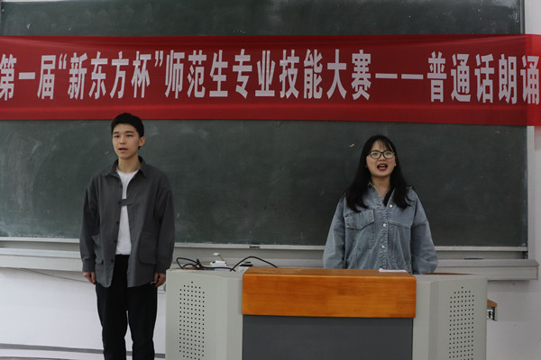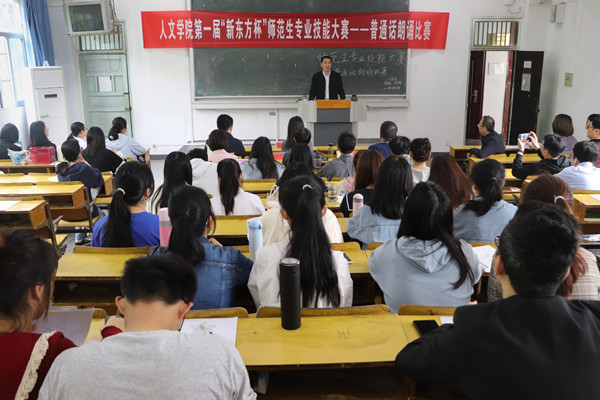 4月24日,beat365亚洲体育官方网站在菱湖校区315教室举办第一届“新东方杯”师范生专业技能大赛——普通话朗诵比赛,邀请安庆职业技术学院教务处副处长、安徽省普通话水平测试员张铮,安庆市新闻传媒中心综合广播副总监、一级播音员胡邦旺,安庆师范大学beat365亚洲体育官方网站副教授、国家级普通话水平测试员吴春平等3位专家担任评委,来自汉语言文学、历史学、汉语国际教育等师范专业共57名学生参加了比赛。