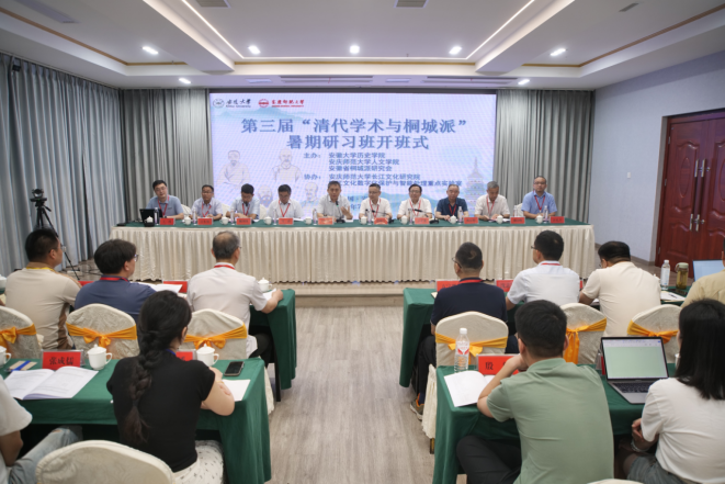 7月12日,由安庆师范大学、安徽大学与安徽省桐城派研究会联合主办的第三届“清代学术与桐城派”暑期研习班开班式在安庆市举行。中国近代文学学会会长、河南大学文学院教授、安徽大学历史学院特聘教授关爱和主持开班式。中国社会科学院学部委员、文学研究所原所长刘跃进研究员,校党委常委、副校长徐晓宁,安徽省桐城派研究会会长、桐城师范高等专科学校党委书记王子龙,安徽大学历史学院院长魏国锋教授分别致辞。