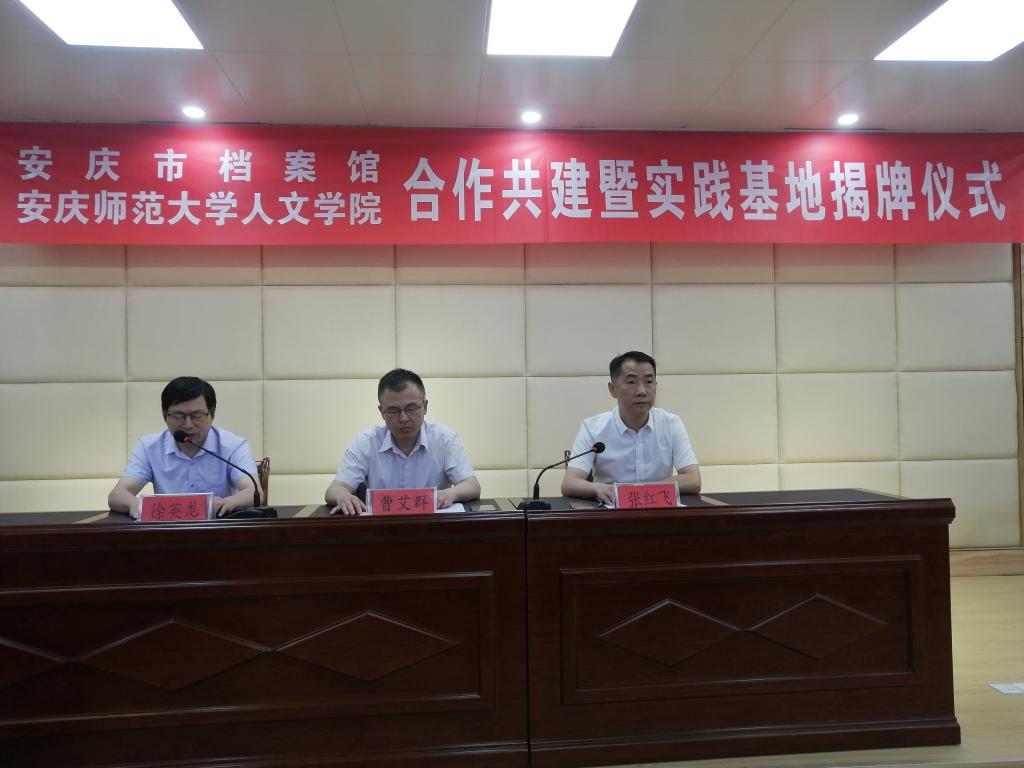 6月9日,beat365亚洲体育官方网站与安庆市档案馆合作共建暨实践教学基地揭牌仪式在市档案馆大楼会议室举行。beat365亚洲体育官方网站党委书记张红飞、安庆市档案馆馆长曹艾群等出席揭牌仪式。市教体局副局长、教务处副处长连飞,beat365亚洲体育官方网站班子成员金仁义、王波、汪孔丰和部分师生代表、市档案馆班子及全体工作人员参加会议。