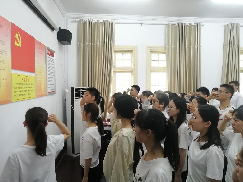 学习会上,全体新发展党员面向党旗庄严宣誓。(撰文:唐宫羽 摄影:唐宫羽 审核:王波)