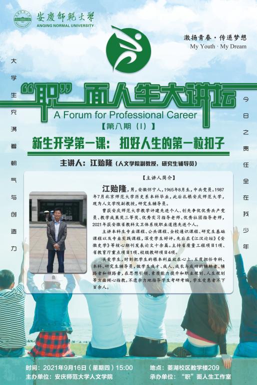彰显风采,示范引领。为集中展示办学特色和育人成果,学院在敬敷书院两侧摆放展架,beat365亚洲体育官方网站话剧社、《季节风》杂志、龙睛读书社、“五月花”语言艺术晚会、省级样板支部等一批校园文化品牌建设成果和国家奖学金、学科竞赛获奖情况介绍向新生们全面展现了人文学子争先创优、锐意进取的良好风貌。宣传栏里“职”面人生大讲坛—开学第一课的海报吸引了大家的目光,“扣好人生第一粒扣子”助力新生坚定理想,树立志向。