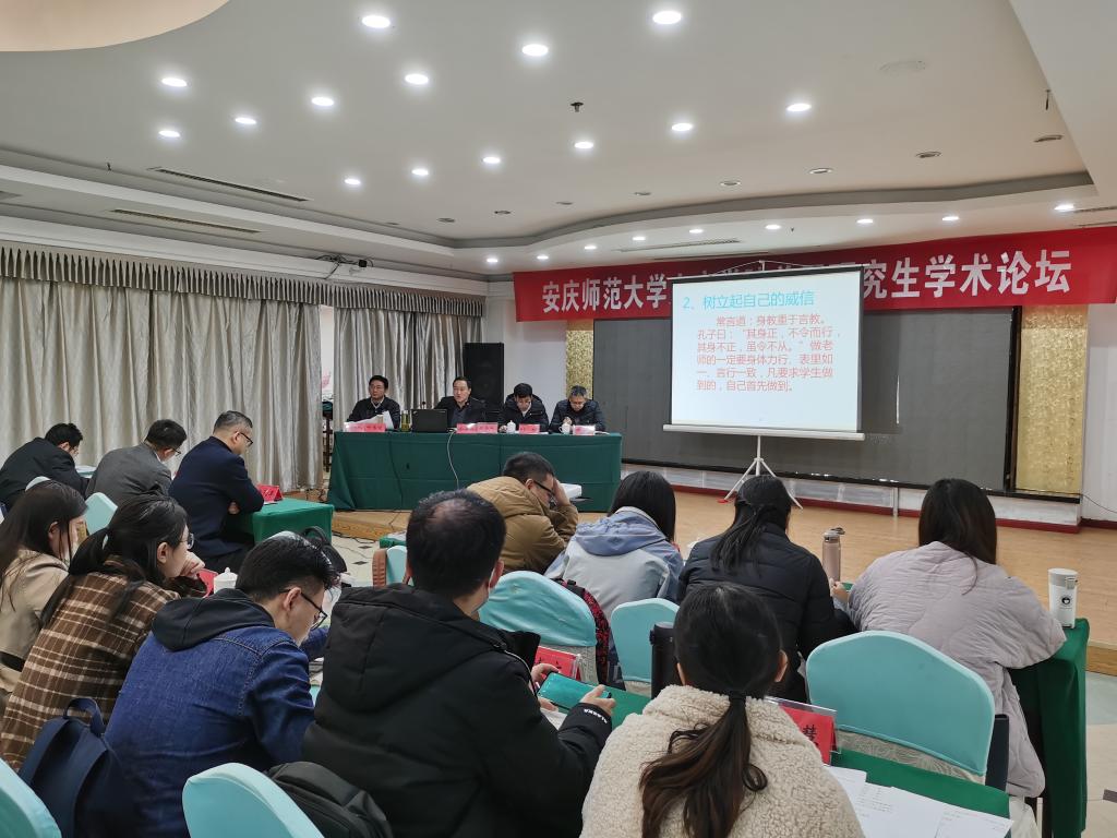 开幕式结束后进入主题报告环节。beat365亚洲体育官方网站教学工作委员会主任叶当前教授担任主持、评议人。安庆市优秀班主任、市模范教师、石化一中语文高级教师徐英典老师、中国史学科解春龙博士、中国语言文学学科何扬博士结合各自研究领域分别作了题为《新时代中学班级管理模式的思考》《抗战时期的同姓联宗:以1941年浙江永康<吕五宗祠志>为例》《清初梁溪词人群体研究》的报告。叶当前教授对三位老师的报告做了精彩点评。