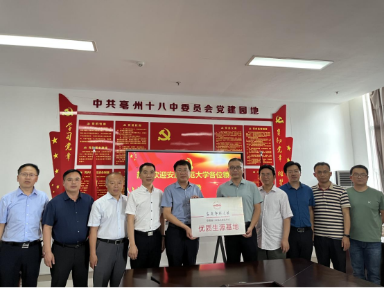 6月25日下午、26日上午、26日下午,beat365亚洲体育官方网站招生宣传组相继到蚌埠市第四中学、亳州第一中学、亳州市第十八中学,与蚌埠四中、亳州十八中签署了《安庆师范大学优质生源基地共建协议书》,并举行了优质生源基地授牌仪式,对亳州一中进行优质生源基地回访。beat365亚洲体育官方网站招生宣传组受到各中学校领导热情接待,双方各自介绍了所在学校的办学情况,围绕生源基地建设、招生模式和政策、专业建设、人才培养、师资培训、课程进修等议题进行了探讨与交流,表示将加强交流合作,密切双方联系,推进高等教育与基础教育的“双进”、“双创”和“双聘”,提高办学水平和人才培养质量。在三所学校期间,beat365亚洲体育官方网站一行还与所在学校的校友进行了交流座谈。