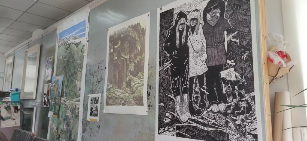 首先,陈小克老师介绍了郑贤红老师的艺术成就,并阐述了指导雕版印刷体验课初衷。随后,郑老师与同学们亲切交谈,一方面了解大家的绘画基础,一方面仔细介绍版画的历史、创作过程和创作特性。郑老师结合自己的代表作《选择飞翔》讲解了艺术构思问题,认为要在日常观察中获得灵感,就像孩子考上大学即将走向远方时的体会一样,要赋予所发现的日常事物以生命的内涵,从而进行艺术创作。郑老师以陈列作品为例,细致讲解每幅作品的绘制步骤和当时的创作场景,深入浅出。最后,老师与同学们展开热烈的交流讨论。大家敞开心扉,畅谈对于版画创作风格的直观印象,既兴奋又紧张,既跃跃欲试又有些畏难。郑老师鼓励同学们要善于将文学的想象和历史的关怀融入到版画的创作过程中,让版画体现其独特的创作价值,为社会服务。同时告诫大家不要因自己不从事美术专业学习而失去版画创作的信心,只要将内心真实想法表达出来就是最棒的。