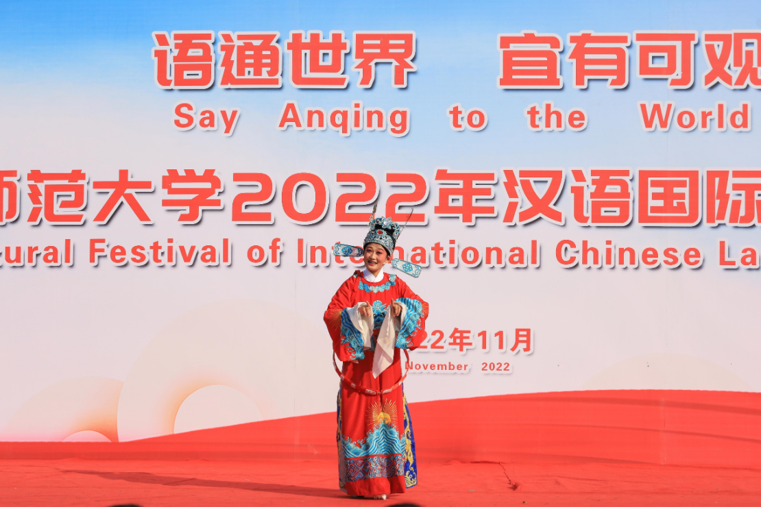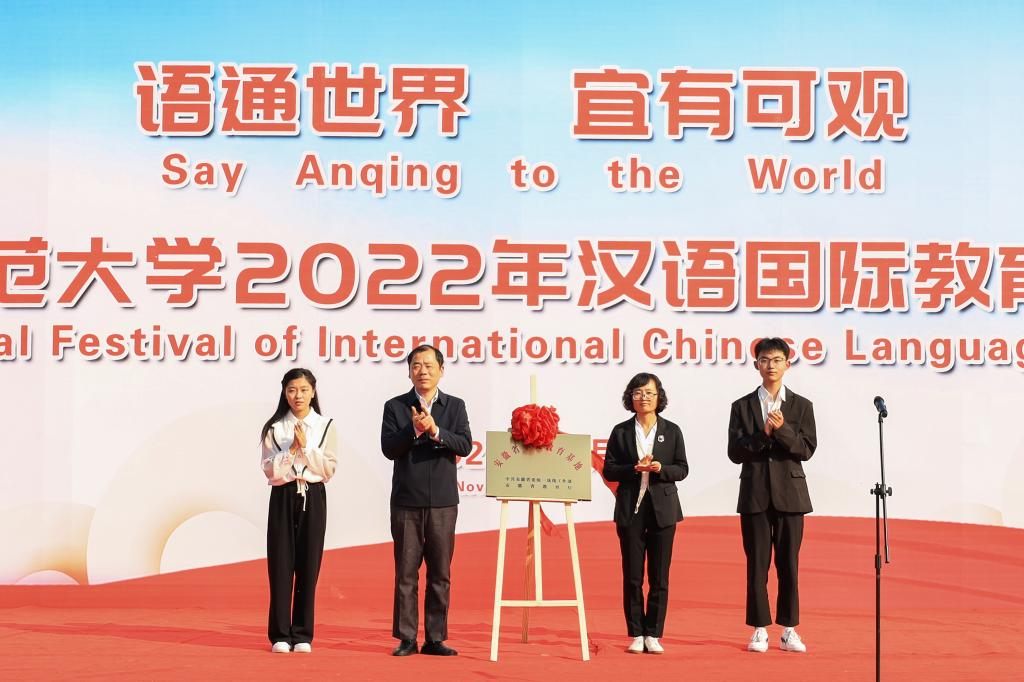 11月9日,安庆师范大学“语通世界 宜有可观”-2022年汉语国际教育文化节隆重开幕,校党委副书记崔明出席开幕式,为“安徽省华文教育基地”揭牌,并宣布文化节开幕。相关职能部门、兄弟学院、beat365亚洲体育官方网站负责人与汉语国际教育专业师生代表等500余名师生共同观看中外才艺汇演。