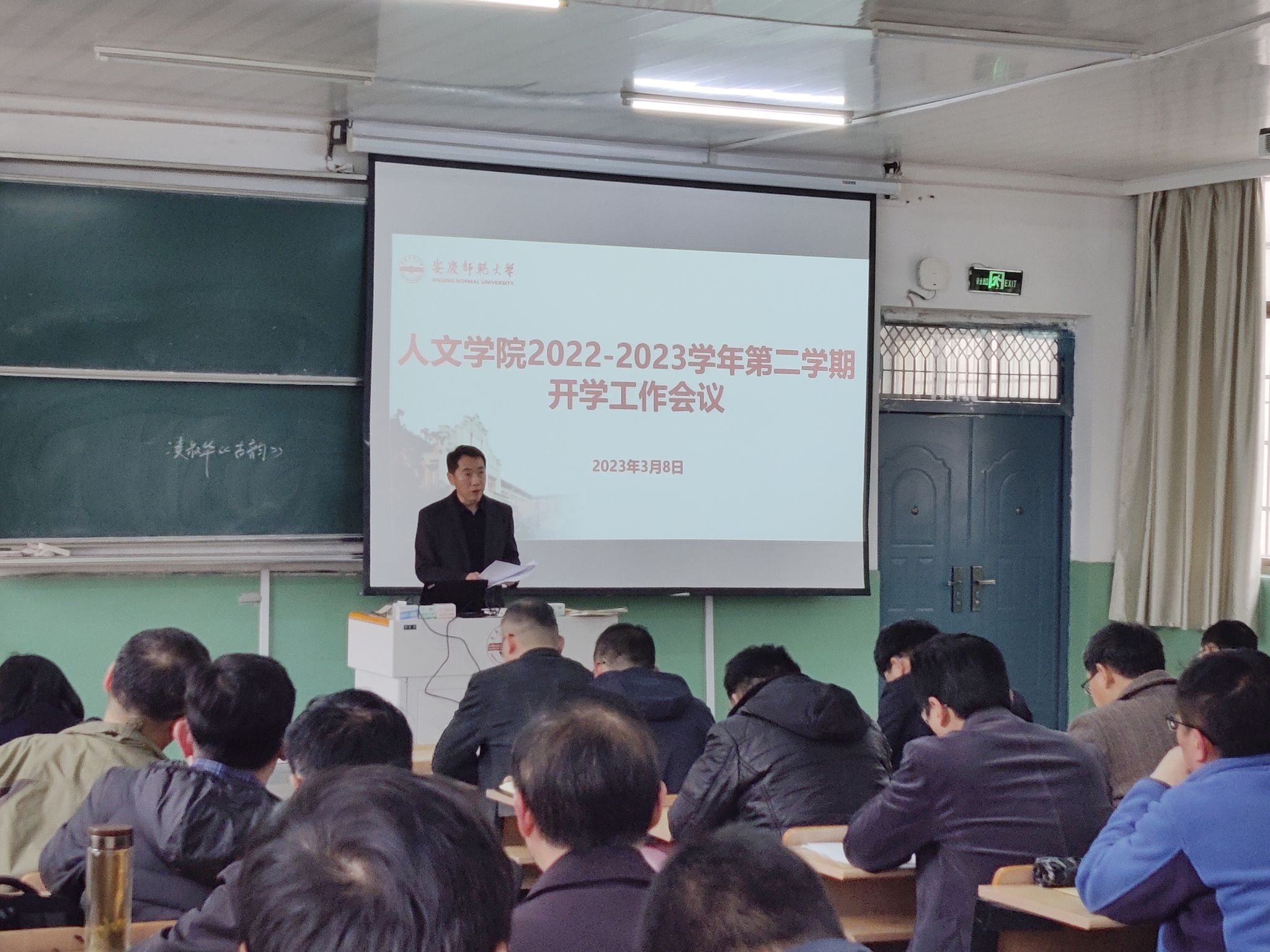 新学期,新征程,新气象。3月8日下午,beat365亚洲体育官方网站在理二阶教室召开教职工政治理论学习暨2023年度工作推进会议。会议的主要任务是:传达校贯彻落实全省持续深化“一改两为”大会暨2023年度工作会议精神,分析形势、谋划发展,坚定信心、埋头苦干,以满格状态、顶格标准起步提速、开局争先,奋力在建设新时代幸福活力特色学院新征程上做出新贡献、谱写新篇章,喜迎学校第二次党代会胜利召开。学院班子成员汪孔丰、王波、沈志富、金松林、周红兵出席会议。会议由学院党委书记张红飞主持。