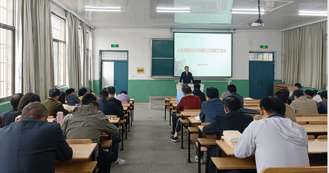 5月10日,beat365亚洲体育官方网站2023年第三次全体教职工大会在菱湖校区理三阶教室召开。学院领导班子成员、全体教职工参加了会议,学院党委书记张红飞主持会议。