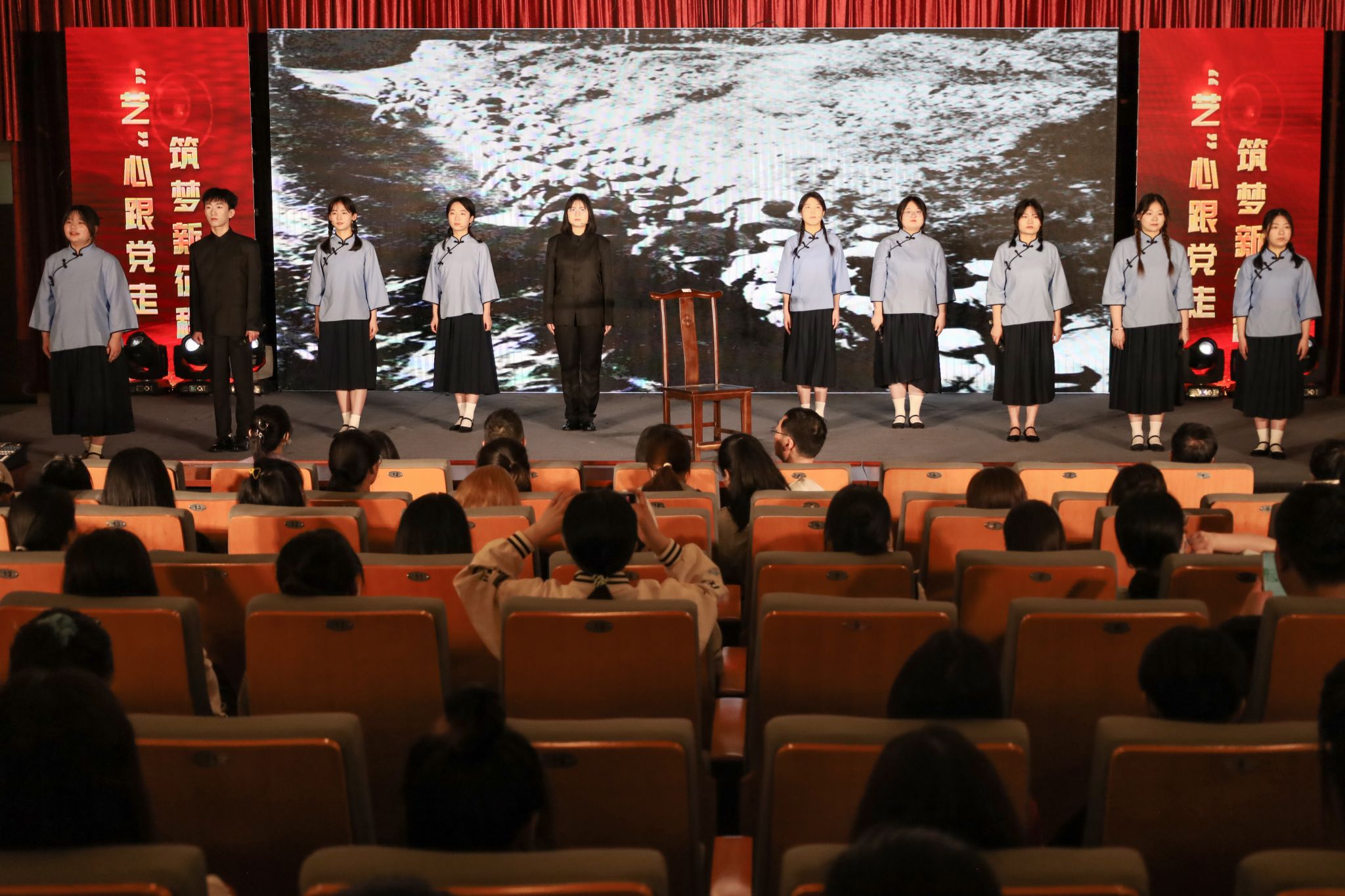“本次艺术党课中有不少演职人员是党员或入党积极分子,通过这样自导自演的方式,大家都备受鼓舞,也更加坚定了青年大学生们在新时代新征程的青春赛道上努力奔跑,自强奋斗的信心和决心!”活动负责人唐宫羽表示,本次艺术党课的开展,旨在深入开展学习贯彻习近平新时代中国特色社会主义思想主题教育,全面贯彻党的教育方针,落实立德树人的根本任务。此次专题艺术党课将理想信念和家国情怀融入表演和作品创作当中,希望全体同学在艺术熏陶中厚植爱国情怀,让党的创新理论入脑入心,真正做到党课学习“知行合一”。(撰稿:学生记者 陈欣雨 石奕舟 摄影:学生记者 张素清 王安琦 审核:王波)