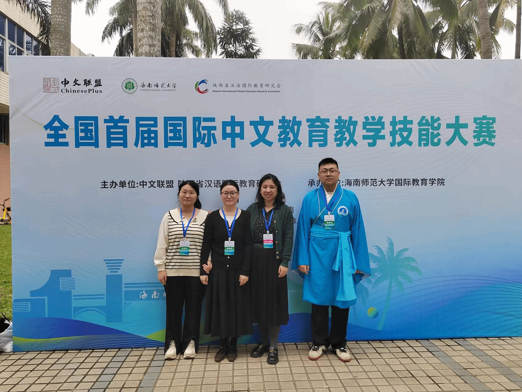 由汉语国际教育研究会与中文联盟、海南师范大学共同主办“全国首届国际中文教育教学技能大赛”于2023年12月2日至3日在海南师范大学龙昆南校区成功举办。beat365亚洲体育官方网站张瑾老师带队,2022级汉语国际教育专业张佳怡、胡晓凤、2023级国际中文教育硕士生罗浩诚三名选手赴海口参赛。