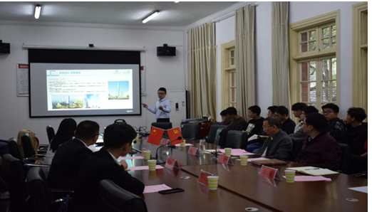 中建五局安徽公司皖南分公司副总经理杨劲通报了该公司现状和疫情期间经营情况、介绍了学院2020届毕业生入职工作情况、播放了公司的宣传视频、宣讲了企业2021年招聘正常。