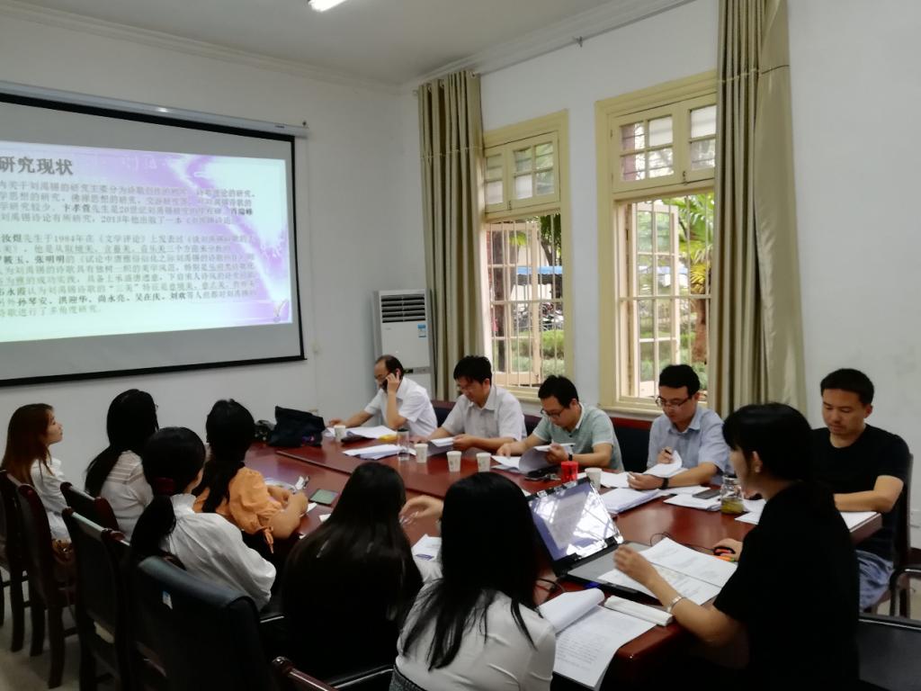 9月16日下午, 2018级文艺学专业、比较文学与世界文学专业硕士研究生学位论文开题报告会在红楼一楼研究生教室举行。方锡球教授、叶当前教授、汪超教授、金松林教授和程通博士出席了报告会,两个专业全体同学参加了答辩。