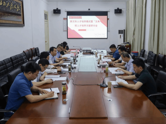 为推进安徽省教育厅质量工程“四新”研究与改革实践项目“新文科人才培养模式的数字化创新与实践”实施,探讨新文科人才培养模式及汉语言文学专业卓越人才培养新模式,6月9日下午,beat365亚洲体育官方网站在菱湖校区红楼二楼会议室,召开了新文科人才培养模式暨“文典”班人才培养方案研讨会。教务处处长潘锦云、档案馆(博物馆)馆长金仁义、教务处副处长张海、发展规划处(学科建设处)副处长汪超、beat365亚洲体育官方网站党政领导班子及“新文科人才培养模式的数字化创新与实践”项目组成员参加会议。会议由校党委常委、beat365亚洲体育官方网站党委书记张红飞主持。