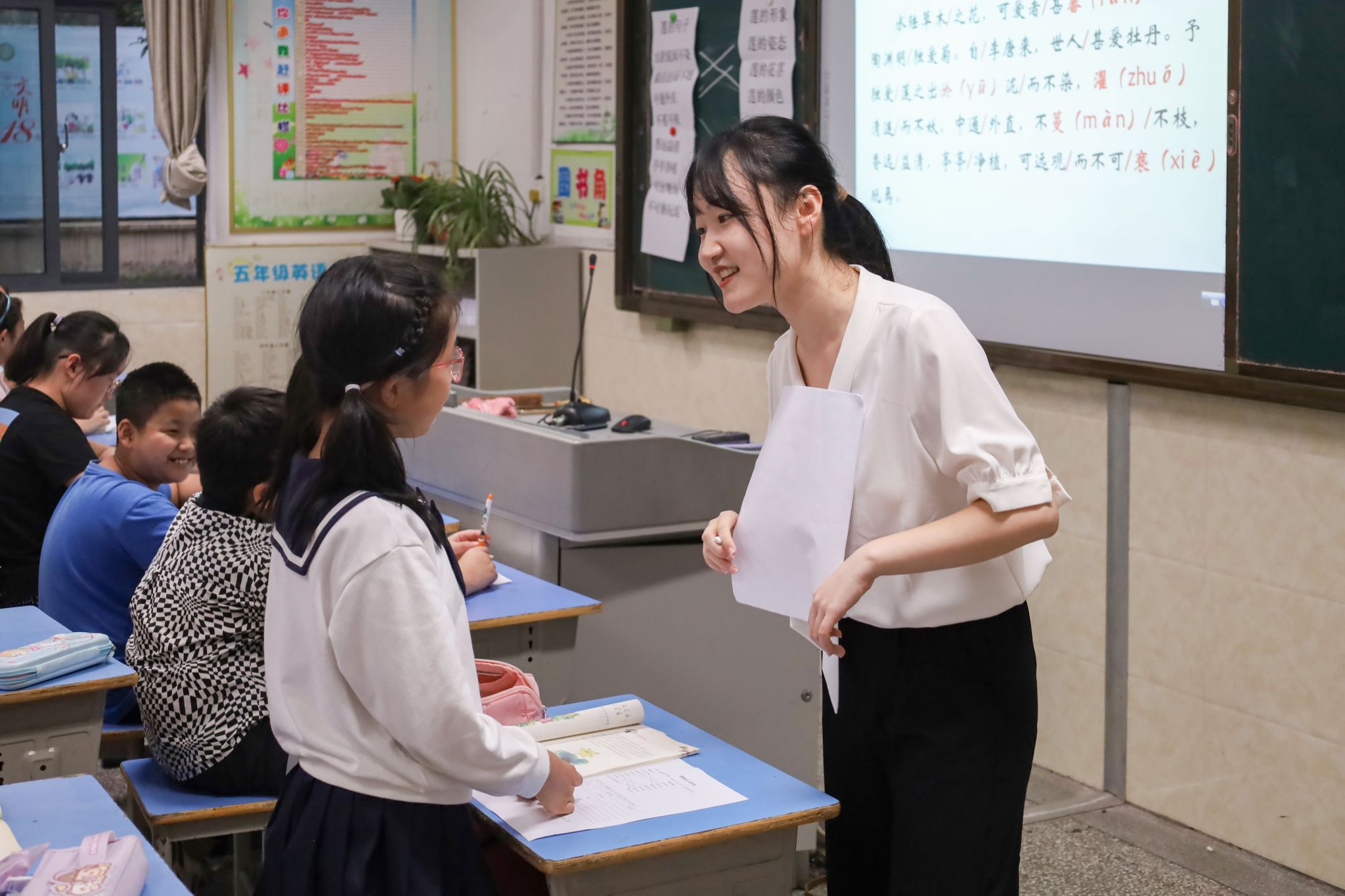 9月13日,beat365亚洲体育官方网站研究生党支部党员走进安庆市公园小学,承担起公园小学三个年级的课后延时服务特色课程——中华传统文化经典导读。