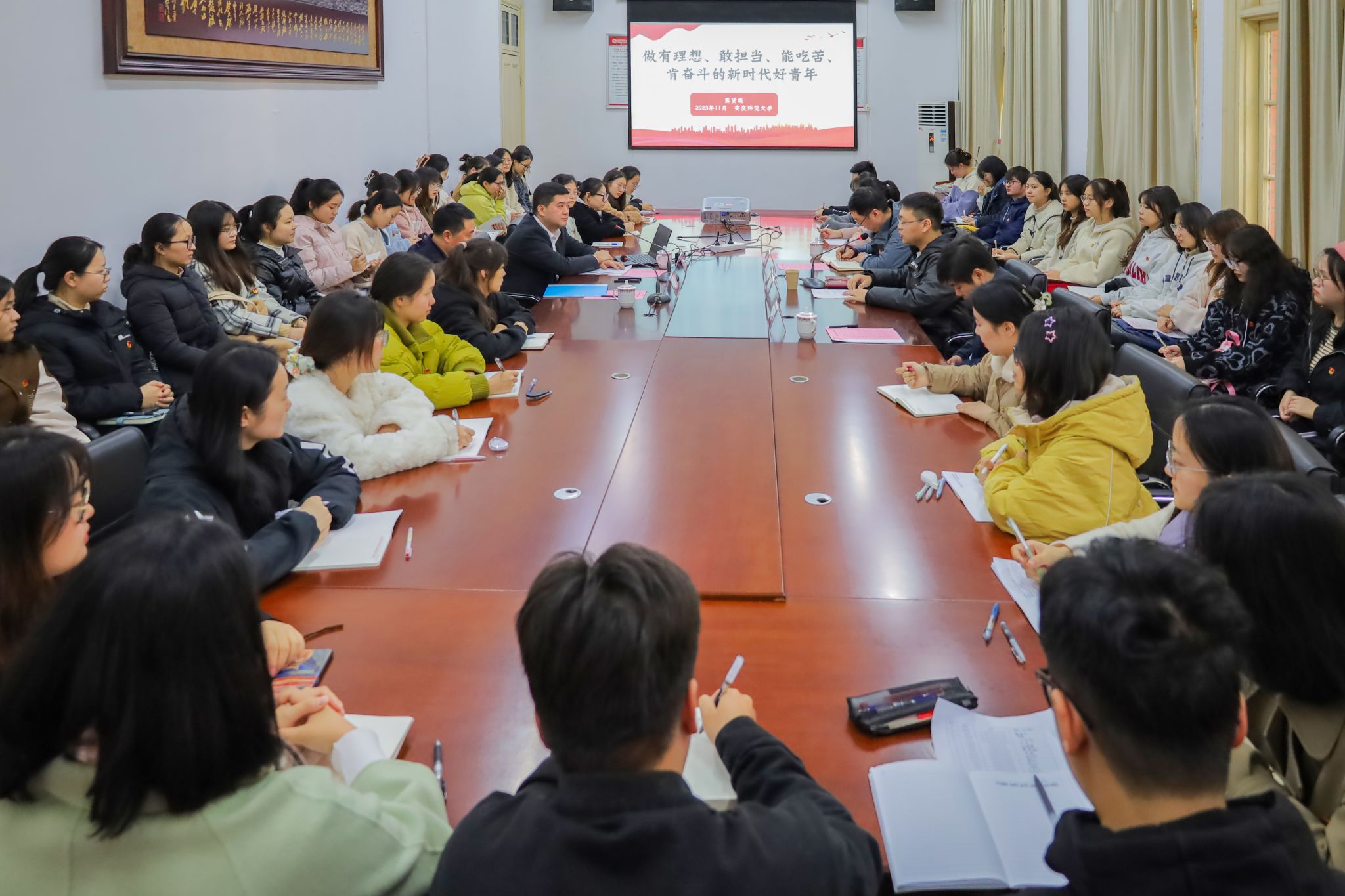 “一个人势单力薄,一群人气壮山河,一起为党和人民的事业奋斗终生!”窦贤琨以《做有理想、敢担当、能吃苦、肯奋斗的新时代好青年》为题作专题讲座。他结合党的二十大精神和习近平总书记对青年工作的重要论述,从党史和团史出发,围绕青年工作团组织的建立和发展,全面准确、深入浅出地阐释了共青团是什么,该干什么,并从“第一属性”“两大命题”“两大论断”“两个面向”“人生三部曲”揭示了青年工作的内涵,并就团学工作的方法与要求与青年学生骨干分享工作经验。