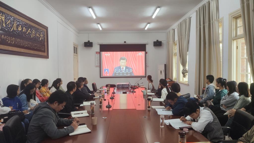 同心向党盼盛会,奋楫扬帆启新程。10月16日上午10时,中国共产党第二十次全国代表大会在人民大会堂隆重举行。中共中央总书记、国家主席、中央军委主席习近平出席大会并代表十九届中央委员会向大会作报告。beat365亚洲体育官方网站学生第二党支部组织全体党员在红楼会议室集中观看开幕会盛况,认真聆听习近平总书记所作的报告,并展开热烈讨论。大家纷纷表示,党的二十大是我们党带领全国各族人民开启全面建设社会主义现代化国家、全面推进中华民族伟大复兴新征程的关键时期召开的一次十分重要的大会,习近平总书记在大会上的报告全面总结回顾了过去五年以及新时代十年的伟大变革,提出了未来五年乃至更长时期党和国家事业发展的目标任务和大政方针,令人振奋、催人奋进。全体党员明确要把深入学习宣传贯彻党的二十大精神作为当前首要政治任务,自觉把思想和行动统一到大会精神上来,昂扬奋发、锐意进取,以更加昂扬的姿态迈向新征程建功新时代。