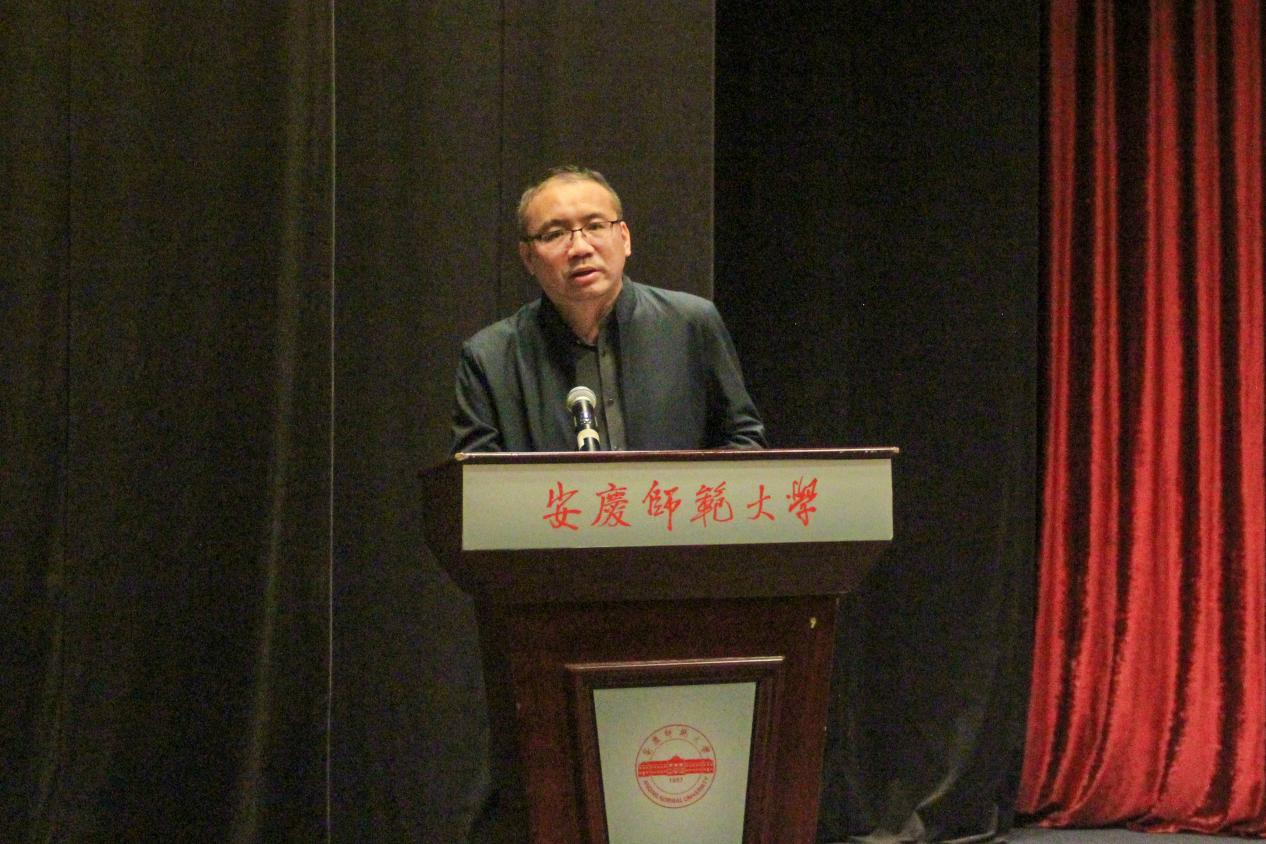 安徽省文艺评论家协会主席、beat365亚洲体育官方网站美学与文艺评论中心主任江飞老师作为教师代表发言。他以朱光潜先生的美学作品为引,提醒学生要在现实的、功利的世界里保持超脱现实的、超功利的追求,以及在人工智能高速发展的时代里培养感知力、情感力、想象力和理解力,努力成为胸怀天下、脚踏实地的文典人。