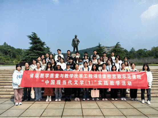 为全面推进课程思政示范课程建设,10月13日,beat365亚洲体育官方网站中国现当代文学教工党支部书记、教研室主任,省级课程思政示范课程“中国现当代文学(1)”负责人冯慧敏带领中国语言文学类2023级6班前往独秀园开展实践教学活动。现当代文学教工党支部安刚强、黄晶晶、胡莎三位老师参与指导。本次实践教学活动也是现当代文学教工支部建设的一项特色活动,支部一直坚持党建引领,聚焦课堂改革,开展本次活动旨在探索课程思政教学的新形式、新路径。