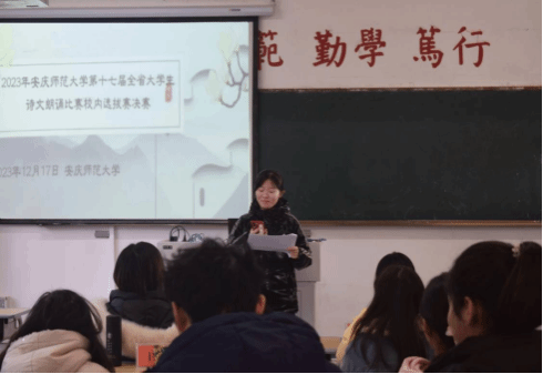 诵青春飞扬之诗,歌时代激昂之章。12月17日,安庆师范大学第十七届全省大学生诗文朗诵比赛校内选拔赛于菱湖校区教学楼顺利举办,全校共有101支团队报名参赛。本次比赛由教务处主办,beat365亚洲体育官方网站承办,以“青春诵祖国,讴歌新时代”为主题,旨在丰富高校校园文化生活内涵,促进高校文字工作深入开展,激发高校学子的爱国热情,传承红色基因。