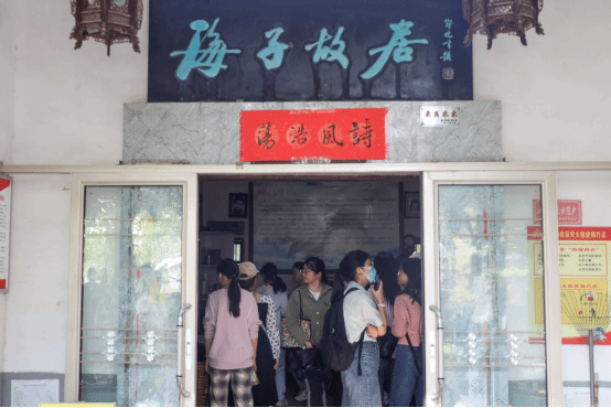 “五岁的黎明,五岁的马,你面朝江水,坐下……可能是姻缘,也可能是友情。”在本次实践教学的第一站——海子故居及其纪念馆,beat365亚洲体育官方网站学子在海子故居门前的广场上,齐声朗诵了海子的诗歌《给安庆》。海子原名查海生,是当代著名诗人,在他短暂的一生中,共创作了近200万字的作品。海子的故居是一座简朴的小瓦房,屋内悬挂有海子的照片,并保留着海子书房。其中一本记录来访者留言的笔记本上,记录了许多当代诗人对海子的赞美和怀念。在故居旁的海子纪念馆中,陈列有海子的生前遗物,完整呈现了海子一生的经历,展示了他各个时期所创作的诗歌作品。师生们低吟着海子的诗句,回顾了他短暂而又灿烂的一生。对海子故居的调研之行实现了让书中人物“活过来”,有利于增强人文学子对所学专业的感性认识,提升专业认知水平。
