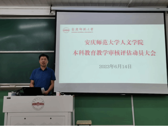 为贯彻落实《安庆师范大学本科教育教学审核评估工作方案》(校政字[2023]14 号)以及学校本科教育教学工作会议暨教育部新一轮本科审核评估动员大会精神,有序推进本科教育教学审核评估工作的开展,6月14日下午,beat365亚洲体育官方网站在菱湖校区理二阶教室召开了新一轮本科教育教学审核评估动员大会。人文全体教职员工参加会议,会议由教学副院长周红兵主持。